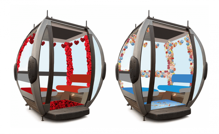 1台は港をイメージした爽やかなブルーを基調としたデザイン、もう1台は横浜市のバラをイメージしたロマンチックな内装で、異なる雰囲気をお楽しみいただけます。窓の外に広がるみなとみらいの景色を、“花のフォトフレーム”越しに堪能できる特別なひとときを演出します。