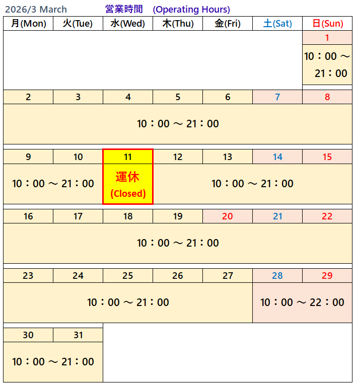 ・営業時間は予告なく変更となる場合がございます。